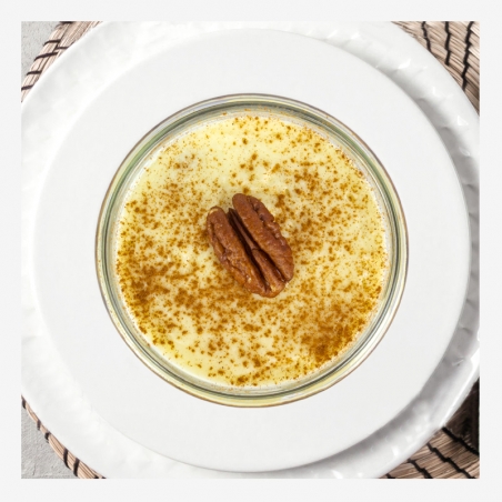 Miękka, gęsta i wilgotna konsystencja ciasta ubogaconego bakaliami z owoców suszonych i orzechów włoskich. Całość przyprawiona korzennym charakterem cynamonu, goździka, gałki muszkatałowej i kardamonu. Deser wykończony warstwą kremowego serka oraz udekorowana orzechem pekan.
